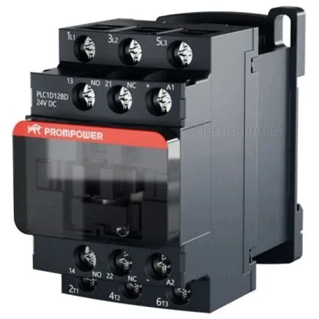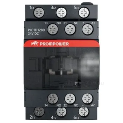 Контактор PLC1D12BD серии Pulse от компании PROMPOWER представляет собой трёхполюсный электромеханический коммутационный аппарат, предназначенный для управления трехфазными электродвигателями и распределения электроэнергии в сетях с номинальным напряжением до 690В переменного тока частотой от 25 до 400Гц или до 300В постоянного тока.