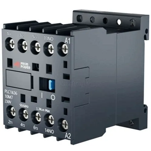 Миниконтактор PLC1K0610M7 серии Pulse от компании PROMPOWER представляет собой трёхполюсный электромеханический коммутационный аппарат, предназначенный для управления трехфазными электродвигателями или освещением в сетях с номинальным напряжением до 690В переменного тока частотой до 400Гц.