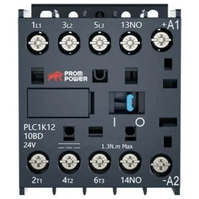 Миниконтактор PLP1K1210BD серии Pulse от компании PROMPOWER представляет собой трёхполюсный электромеханический коммутационный аппарат, предназначенный для управления трехфазными электродвигателями или освещением в сетях с номинальным напряжением до 690В переменного тока частотой до 400Гц.