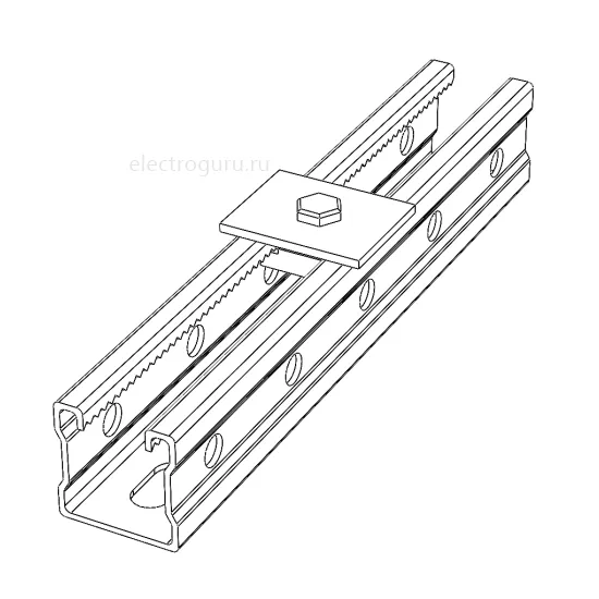 Пластина с одним отверстием MSF501 предназначена для крепления шпильки к СТРАТ (STRUT) профилю. Закладная гайка закладывается внутрь СТРАТ-профиля а пластина MSF501 накладывается с внешней стороны. Далее гайка и пластина стягиваются шпилькой между собой и фиксируются гайкой. Таким образом СТРАТ (STRUT) профиль надежно подвешивается на шпильке.