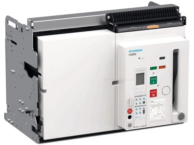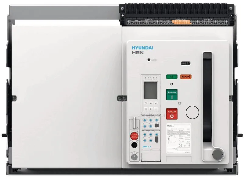 Воздушный автоматический выключатель HGN 4000 от известного корейского производителя Hyundai Electric рассчитан на номинальный ток 4000 Ампер, имеет предельную отключающую способность при коротком замыкании Icu=100кА при напряжении 400В переменного тока и применяется для защиты распределительных цепей от перегрузки, короткого замыкания и замыканий на землю в сетях напряжением до 690В переменного тока.
